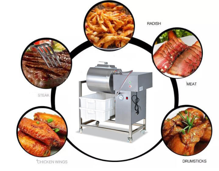 Vacuum marinated machine is to process meat and vegetables by brine water and keep food fresh and tasty. Nice food processing machine.